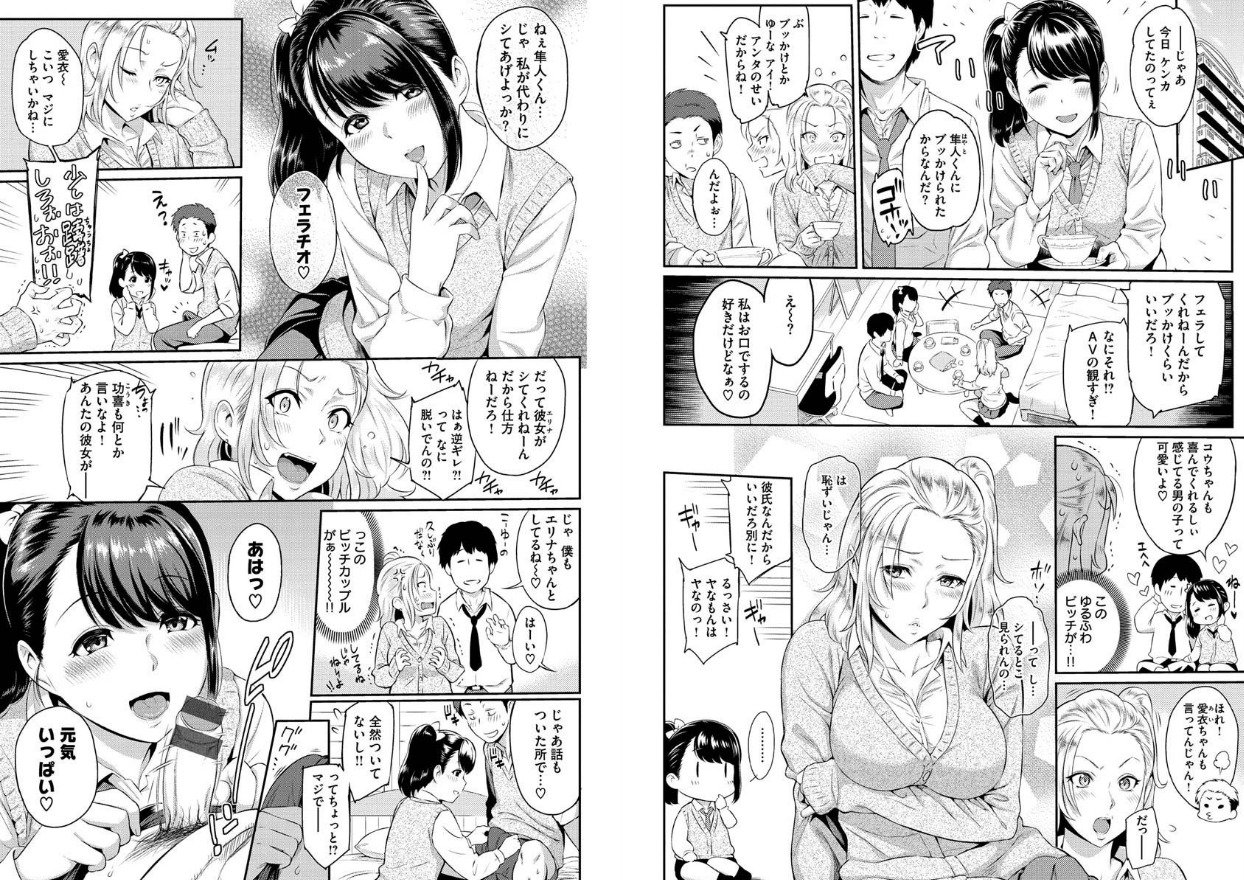 純情ギャル×清楚ビッチの明るいスワッピングもの。