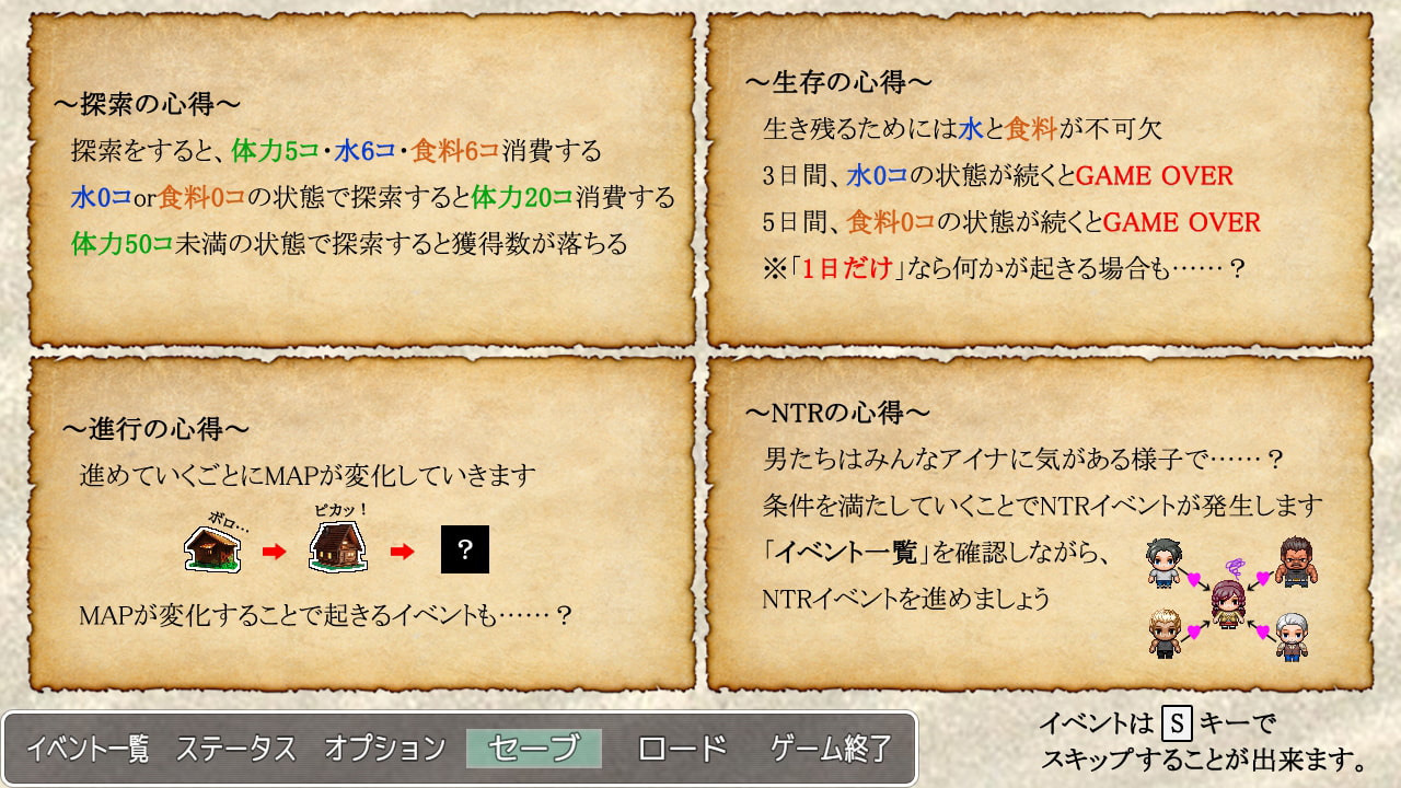 主人公そっちのけで乱交したり、食料得る為に身体差し出したりと色々出来そうなのに勿体ない。