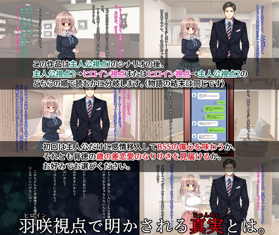 ただしヒロインは学生、寝取り男は社会人なので歳の差男女の背徳感を強調して描写しています。