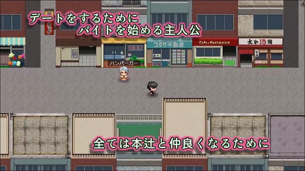 主人公はバイトをして金を稼ぎ、ヒロインとデートをします。